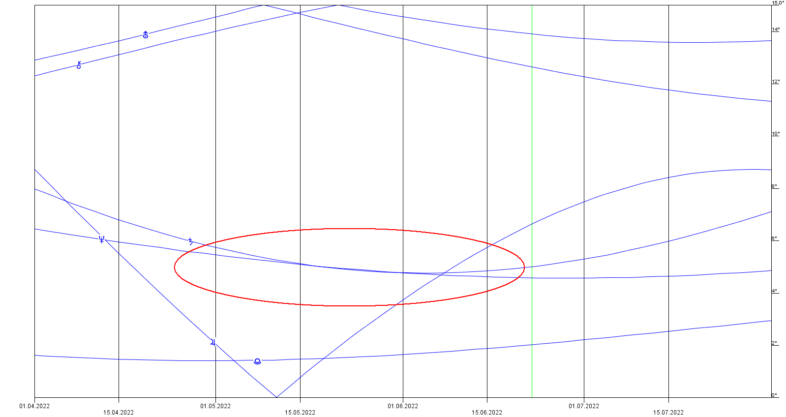Von noch deutlicherer Symbolik war eine Verbindung von Uranus und Neptun in Teiler 7, die am 9./10. Juni